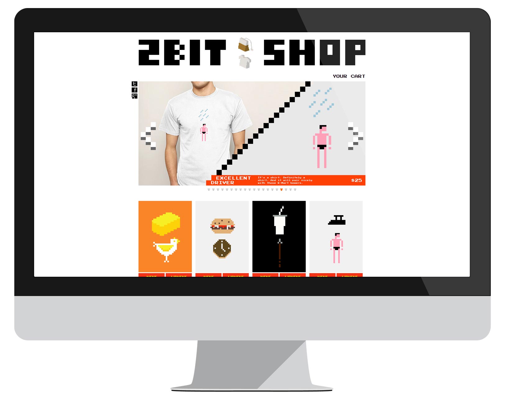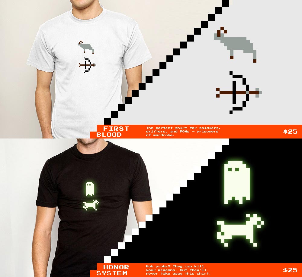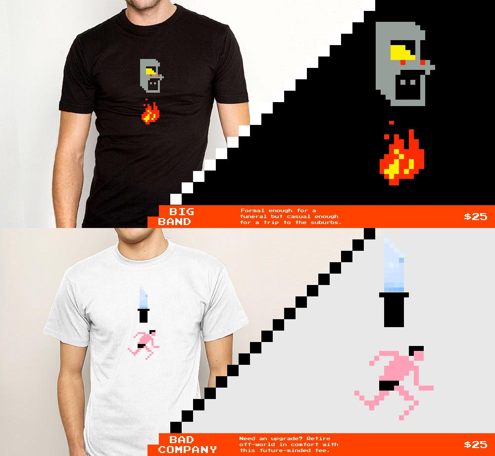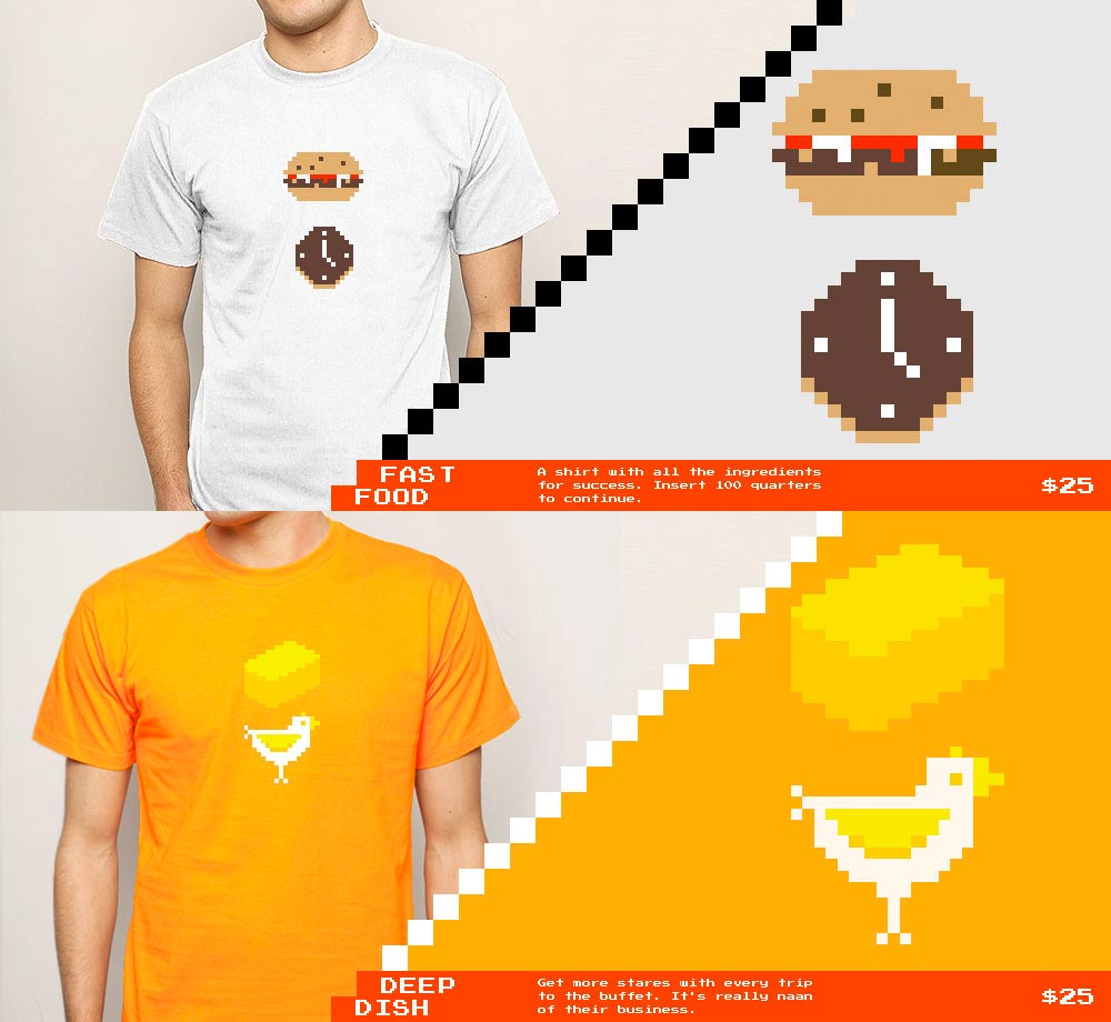2Bit - A subtle, wearable tribute to the things you love, told through pixelated pairs (tagline - Anders J. Svensson) It's a t-shirt shop with a playful approach to the graphic tee using pixelated pairs to hopefully get a chuckle, chortle, smile...come on, it's a certain kind of subtle tee.